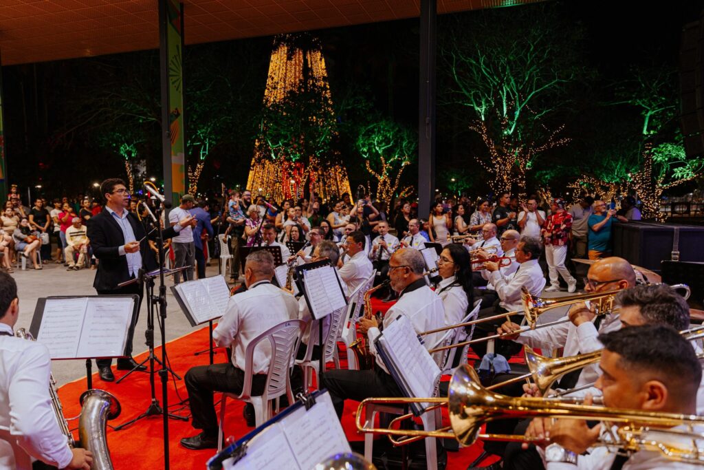A programação cultural da noite foi encerrada com o espetáculo “Auto da Luz do Amor”, que levou ao palco do Anfiteatro a essência do Natal, narrando o nascimento de Cristo com sensibilidade e maestria. A plateia acompanhou cada cena com atenção e entusiasmo. Entre o público que assistia, estava Karina Oliveira, que externou a sua satisfação de participar de mais um Natal Iluminado.